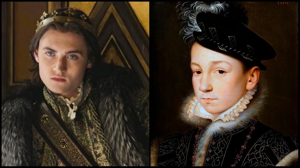 In History: Catherine de Medici was indeed a force to be reckoned with at the French court at this time, not least because King Charles was still a young teenager of fourteen/fifteen. His brother Henri was a year younger still, so they were hardly fighting over women and the throne. Their sister, Queen Elisabeth of Spain (Leeza in the show) did not try to make France a vassal state of Spain. She had little interest in the politics of the country in which she was queen, let alone the one she had left behind. She actually remained close to Mary, Queen of Scots, and would have been a safe haven for her former sister-in-law when she escaped Scotland, but she unfortunately died in childbirth before any plans could be made.
