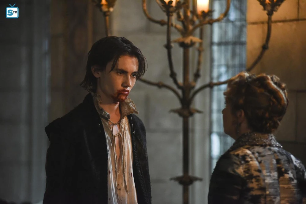 Reign presents us with a young Charles IX struggling with the trauma of the last season, where he witnessed his friend burn to death. He is so traumatised he can’t handle life, let alone the daily pressure of ruling a country. His mother, Catherine de Medici, does her best to hide his condition from the rest of the world. His condition deteriorates to the point where it cannot be ignored. He leaves the palace to go “hunting” and returns covered in blood. He speaks to corpses, and rumours run rampant that he’s actually a cannibal. He eventually recovers enough to perform his duties, with the help of a conversion to Protestantism and the companionship of a peasant girl whom he intends to marry.